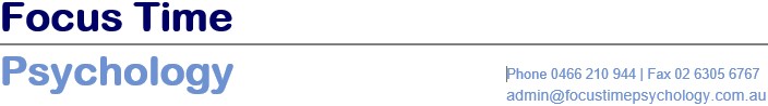 Focus Time Psychology acknowledges that we are located on the Country of the Wiradjuri People. Focus Time Psychology respects and acknowledges that its people and facilities are on the land of the world’s oldest living culture. Focus Time Psychology would like to pay respect to Elders, past and present and to all First Nation Australians.